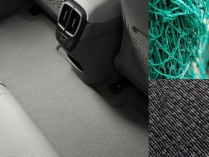 Komponente sjedala i tepiha sadrže recikliranu PET tkaninu te bioplastiku izvađenu iz šećerne trske i kukuruza, smanjujući potrebu za fosilnim gorivima.